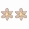 Mooie goud kleurige stainless steel bloem oorbellen met een pareltje in het midden.