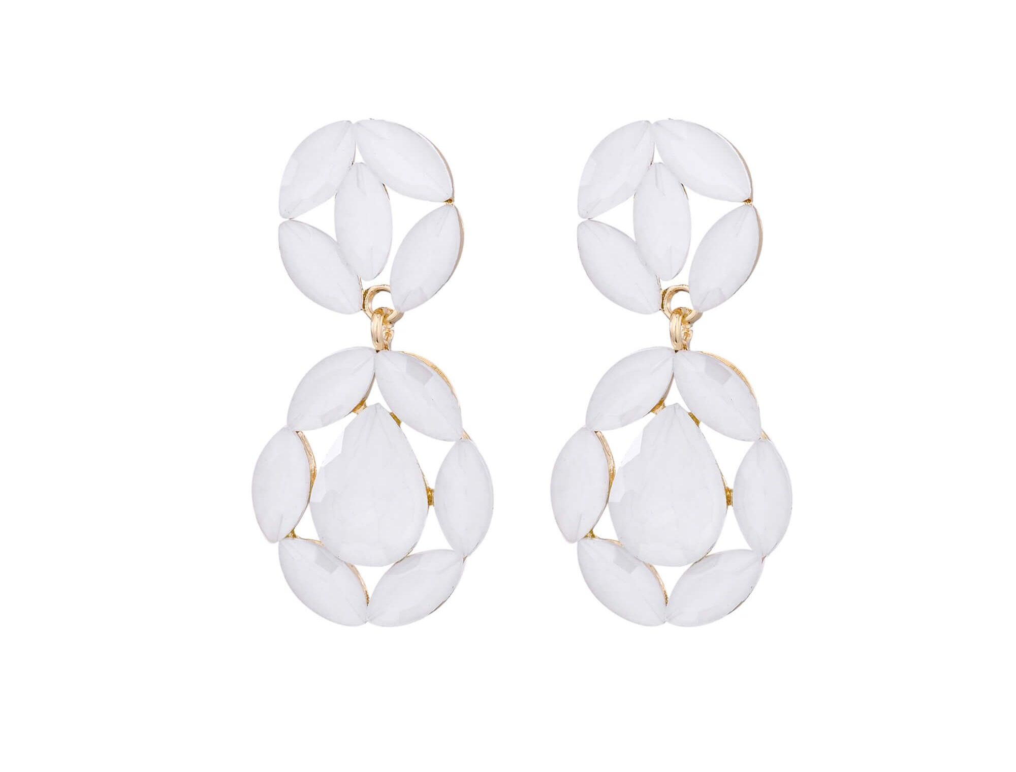 Mooie stekers met 2 ovale hangers en daarop steentjes van wit glaskristal.